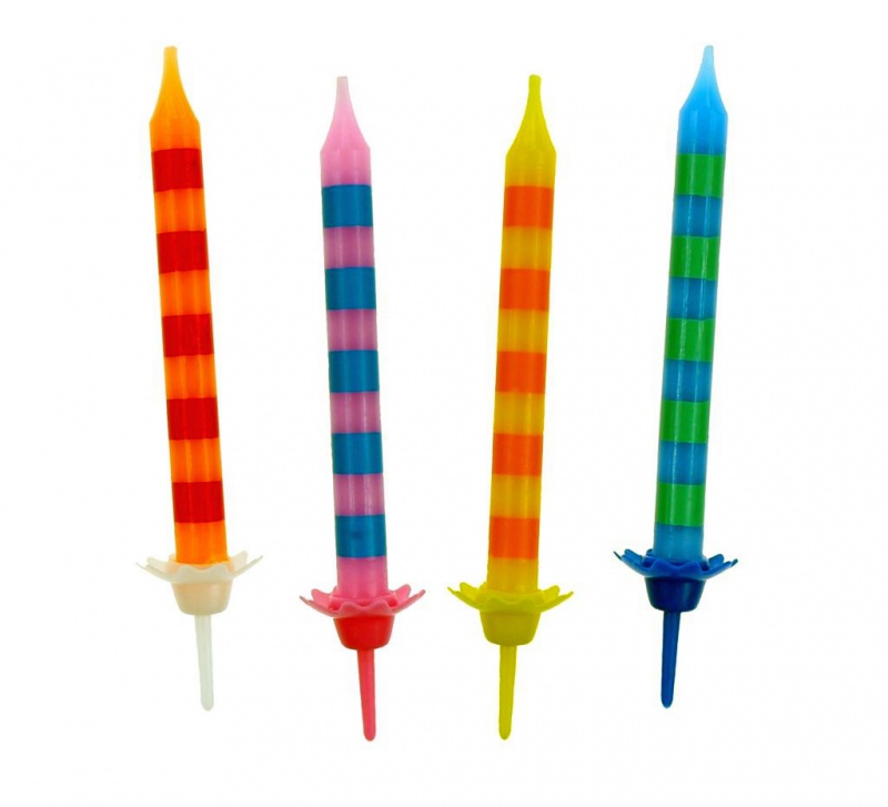 Świeczki urodzinowe w paski, 24/12, 4 kolory, 6,3