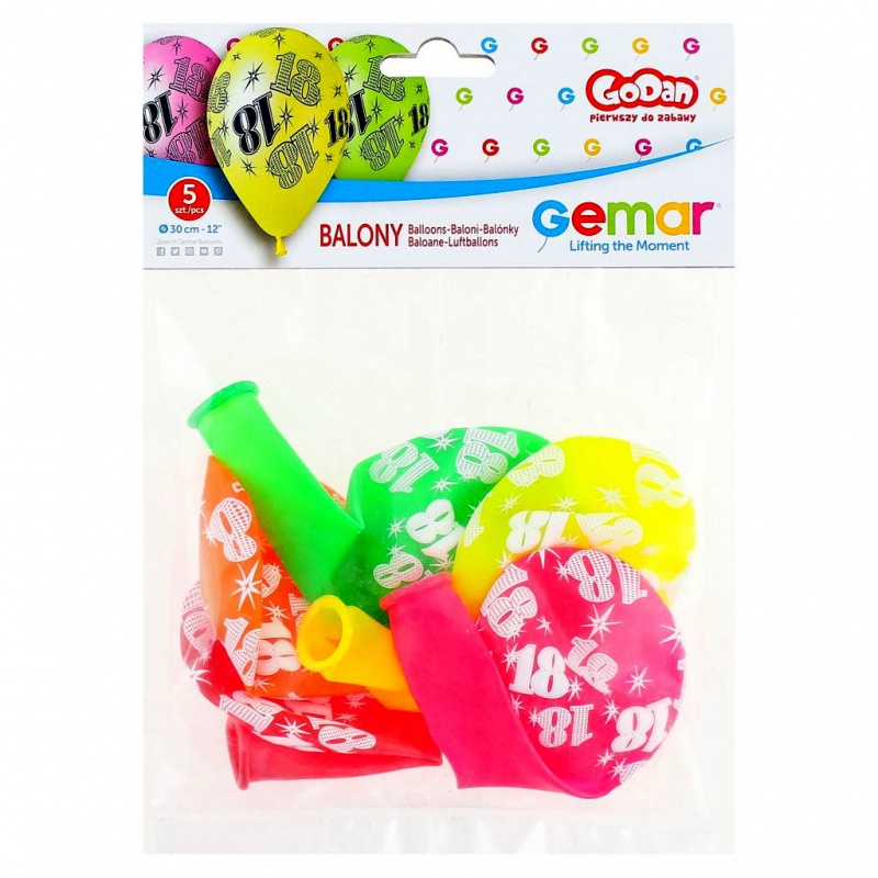 BALONY B&C 12" Z NADRUKIEM 18 ZŁOTE I CZARNE 5szt.