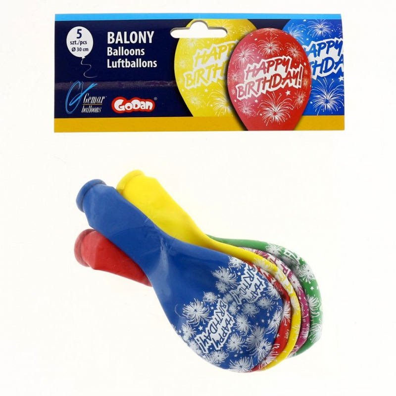 Balony Premium "Happy Birthday (fajerwerki)", 12"/